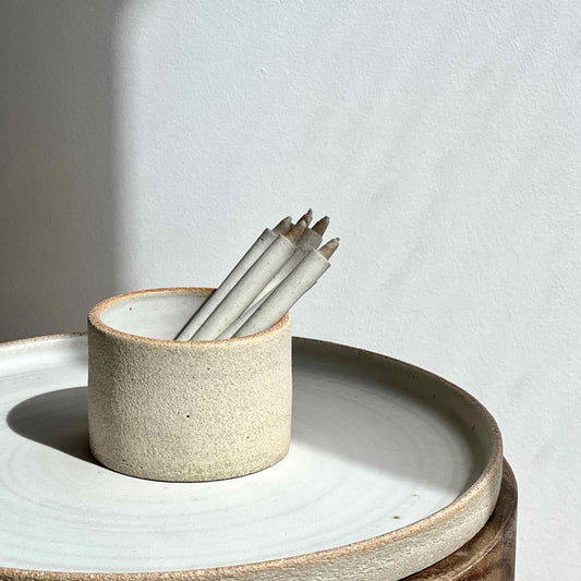 Richly textured and pleasingly solid, Candle Kiosk ceramic candle holders are handmade in Australia. Create layers of candles or use them to hold small candles, matches and accessories.